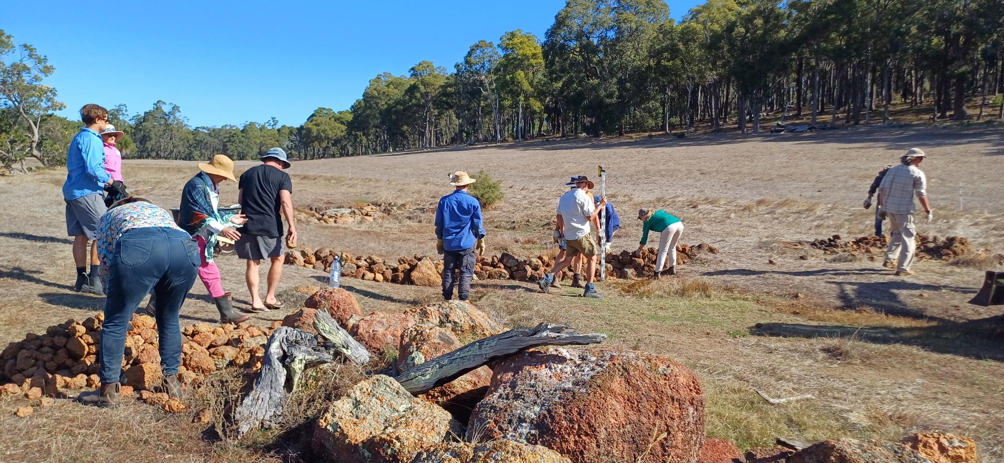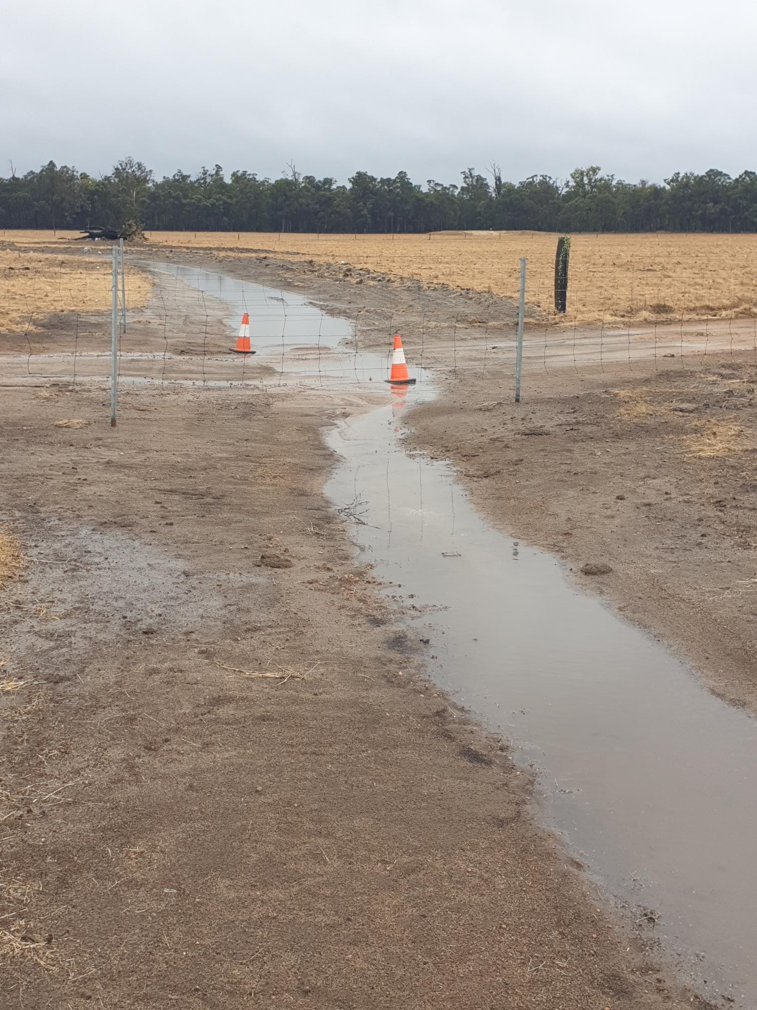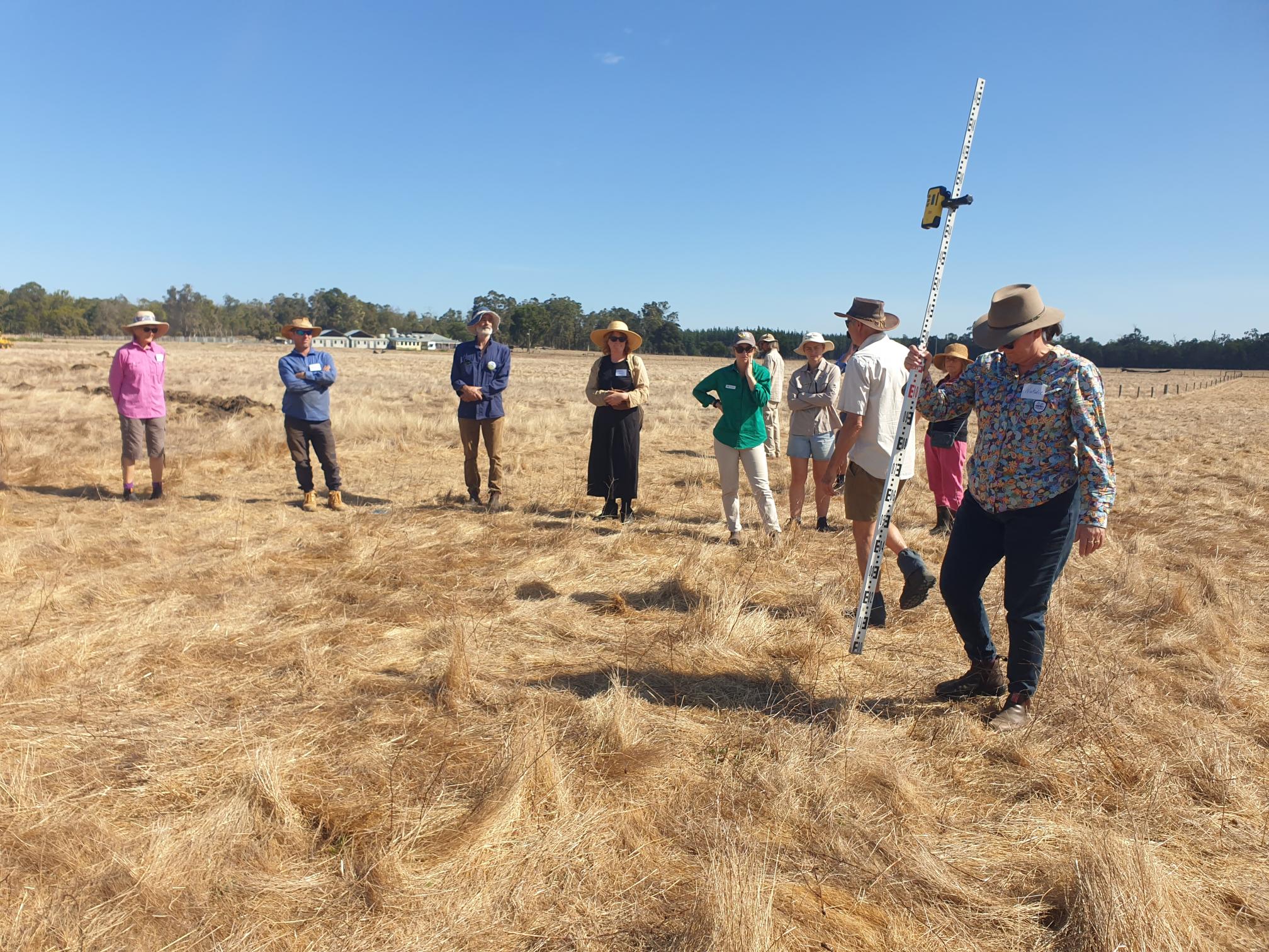 Under a blazing WA sunny sky in March, Lance Mudgway and an eager team embarked on a skills-building tour of two mentoring properties. Their first stop, Wilga Farm is a regeneratively managed livestock enterprise and farm-stay. Here, farm managers Brett and Nat Ridley under Lance Mudgway’s mentorship, have been through a design and planning process to create a network of contours to slow the flow of water across the subtly sloping terrain. On the day, the team used a laser level to mark the contour followed closely with a grader. The machine operator made several passes to ensure that both the depth and shape of the contours suited the local terrain.
