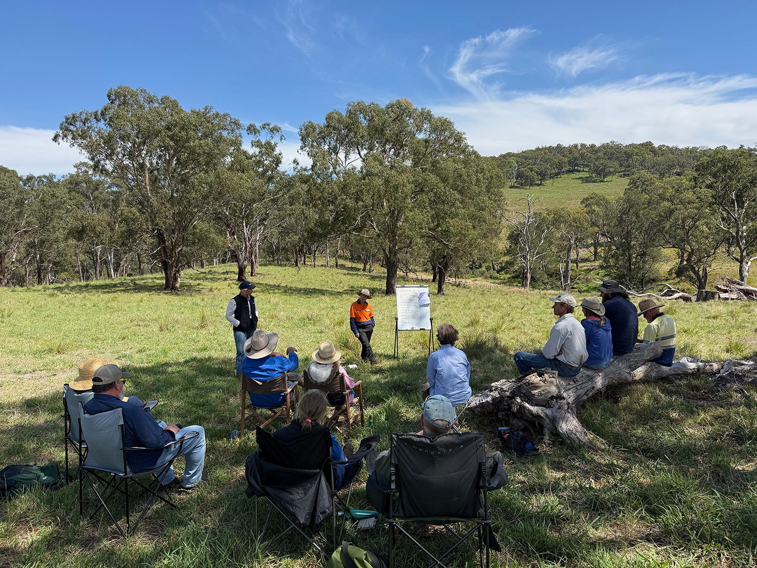 Day One introduced the fundamentals of reading a landscape, understanding the water cycle, property mapping skills and analysing a catchment. Practical, hands-on activities and site visits at the host property in Sandy Flat helped participants gain an understanding of functional and dysfunctional landscapes and how to assess the health of a waterway on their property.