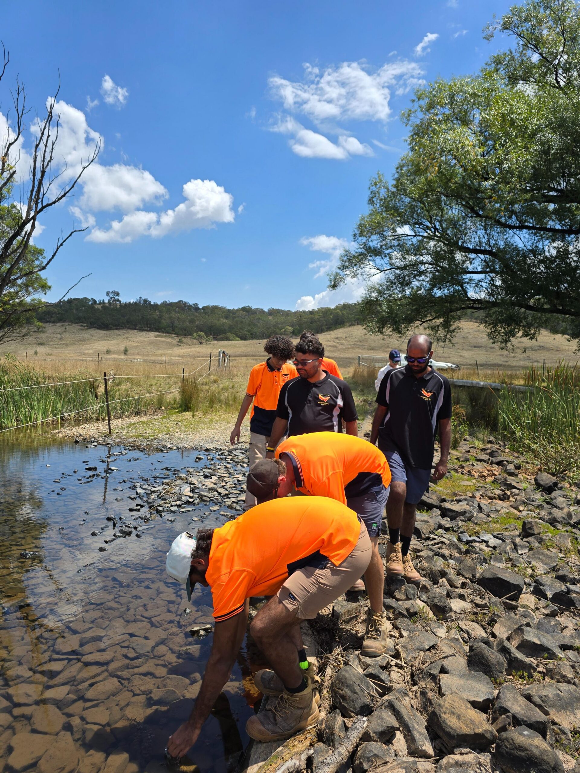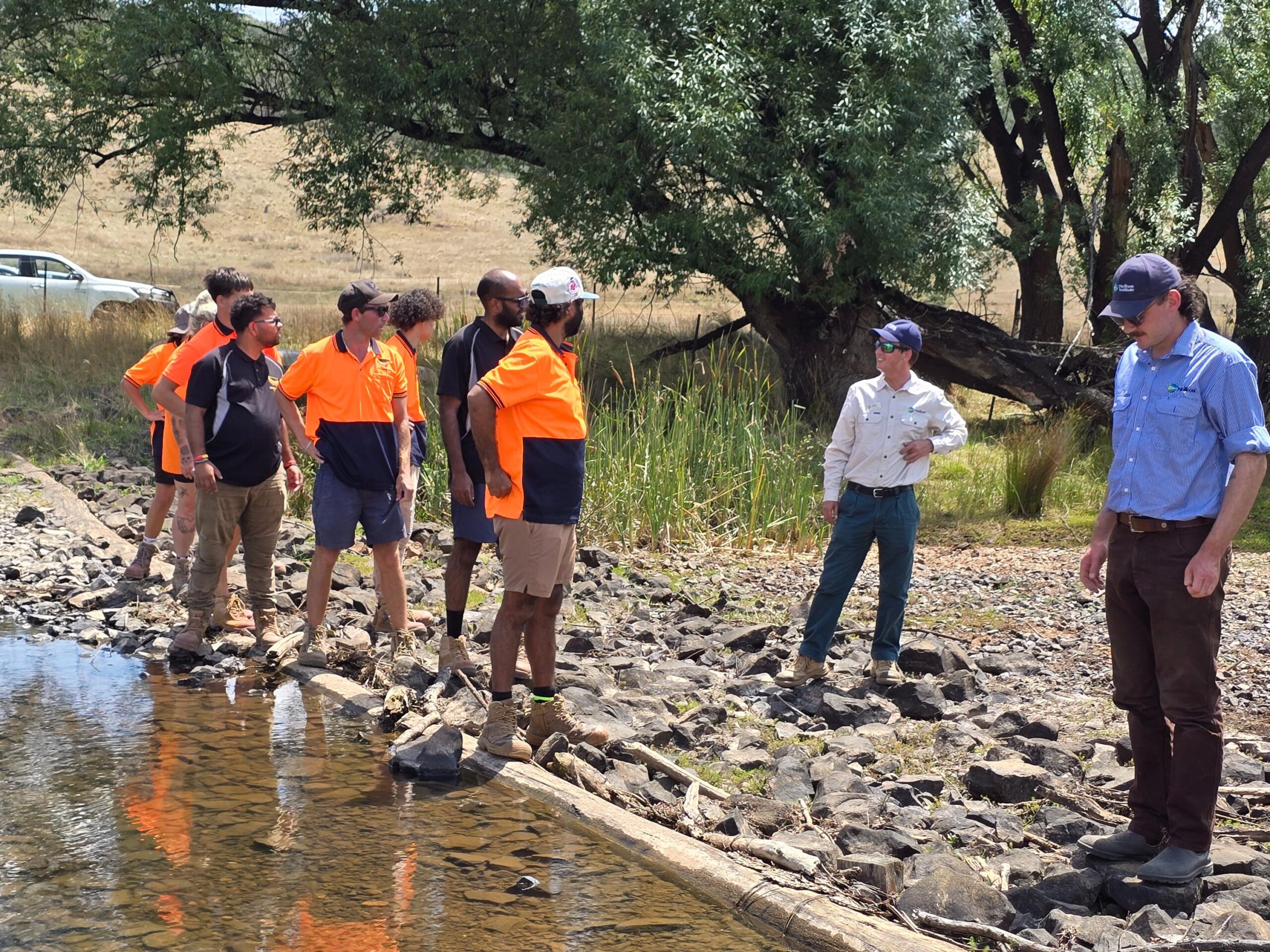 The Walbunja Rangers from Yuin Country visited Mulloon to explore landscape rehydration in action and will help shape the future First Nations Water Skills Certificate.