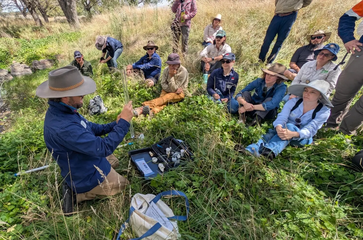 The group dynamics and energy across the four days were genuinely fun and energising, and it was incredibly valuable to have so many key program stakeholders in one place – collectively learning, sharing knowledge and deepening our collective understanding of water management. The time spent together touring project sites, learning the key elements of landscape rehydration planning, design and construction, and trialling new educational games developed by BOHO Interactive, which was a real highlight for everyone involved.