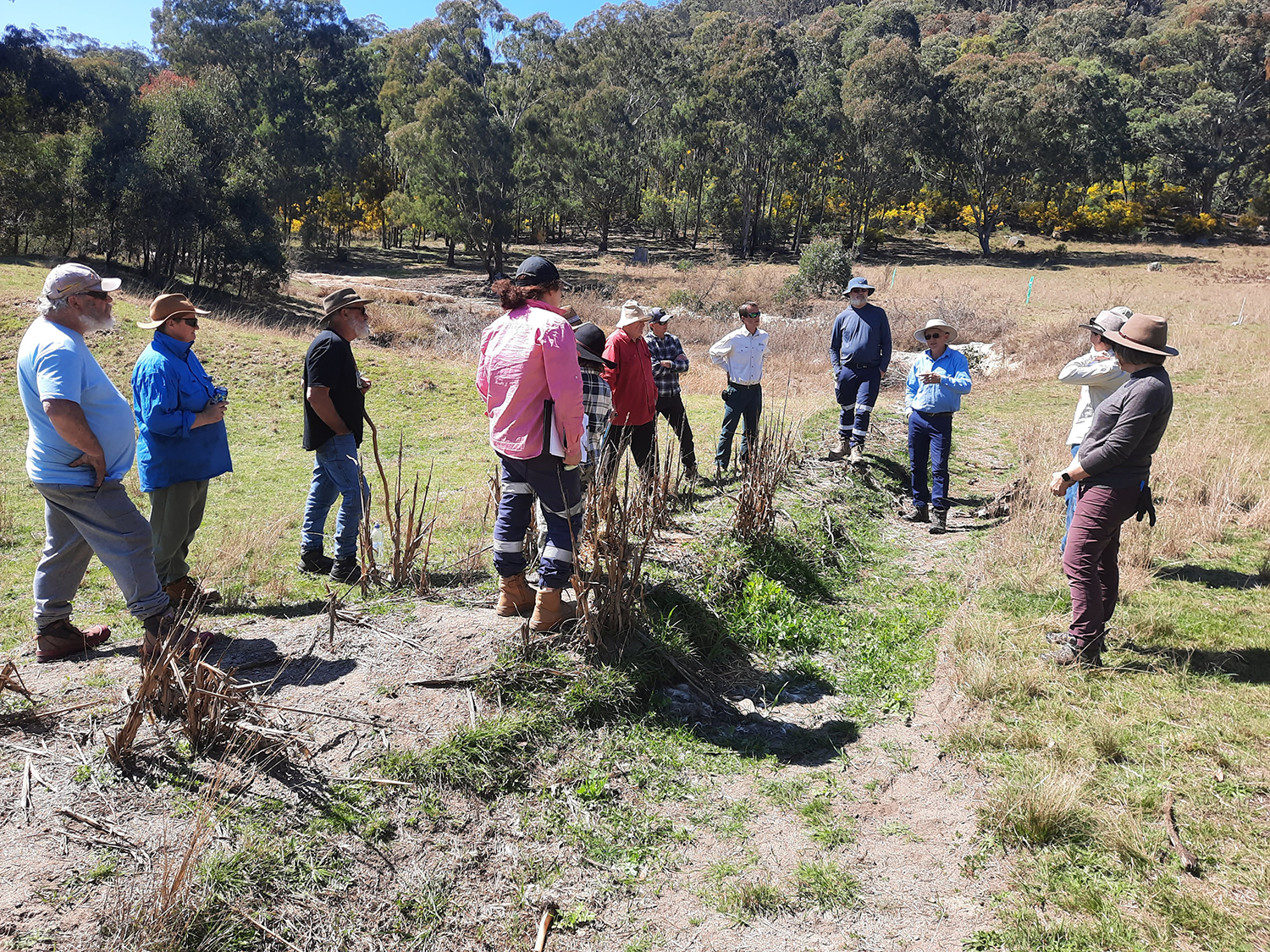 We also surveyed a recently built contour with plantings on a hillside at Franks’ Breakaway, one of a few that Michael and Cheryl have built to slow surface flows, encourage infiltration and reduce pressure on the waterway. This was an opportunity to connect the ‘landscape rehydration toolkit’ into the river-focused learnings.