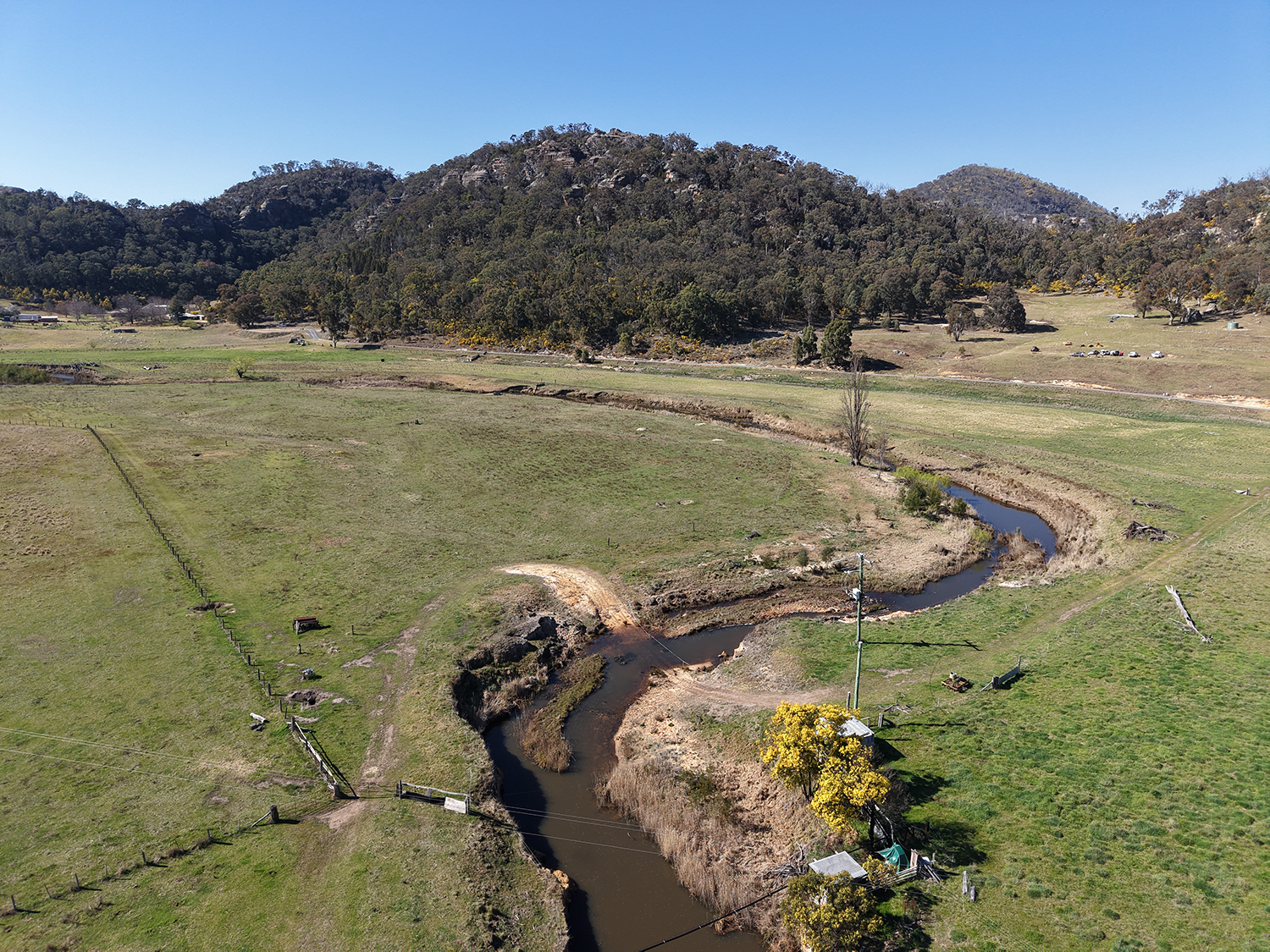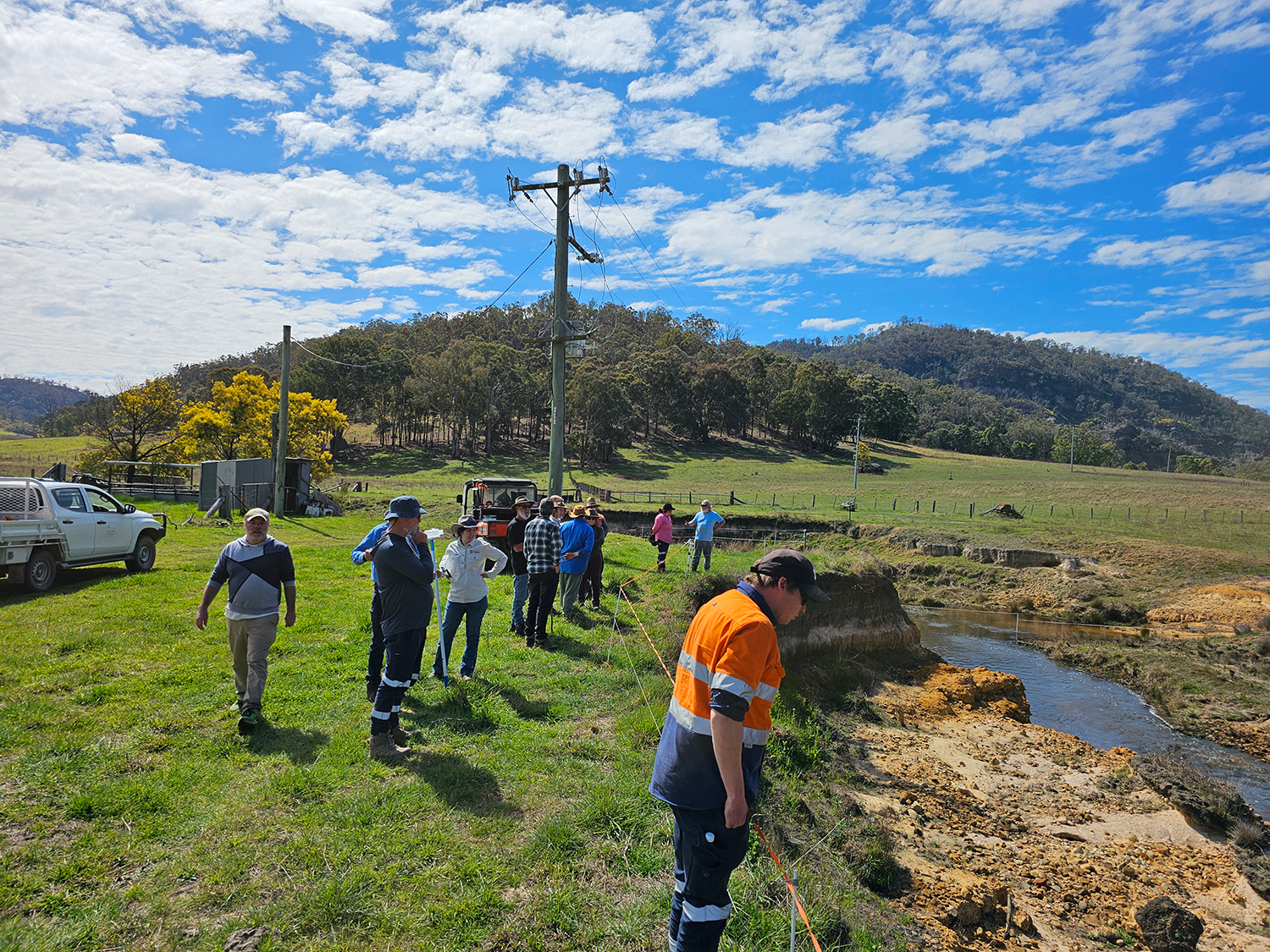 The next day we spent time with the Cudgegong on the regenerative agricultural property Franks’ Breakaway. This property hosted a Mulloon education event with Kandos High School back in 2022, just after the river was badly impacted by the 2022 floods, which were especially erosive due to landscape’s vulnerability following the ‘tinderbox drought’ of 2017-2019 and the ferocious 2019 bushfires. We explored habitat conditions, water quality indicators, and witnessed how the river was gradually regenerating: wattles, cumbungi, riffles and grasses taking over the banks that had been battered by the landowners to be less sheer.